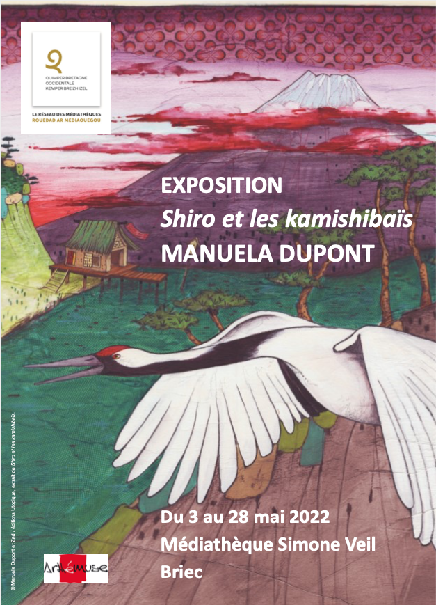 Cette exposition tournera dans 4 médiathèques jusqu’au 24 juin > LIEU 3 : Exposition des planches originales et dessins de l’album « Shiro et les kamishibaïs » édité chez Utopique ainsi que quelques tableaux et des reproductions de dessins, à la Médiathèque Simone Veil en partenariat avec l’Arthémuse – 46 rue de la Boissière – 29510 BRIEC