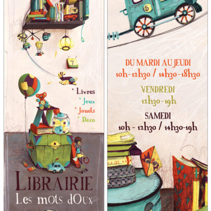 Marque-page pour la librairie Les Mots Doux – Format 20,8x5,8cm. Illustrati...