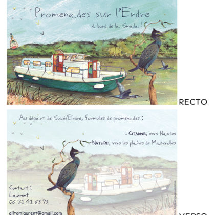 Carte de visite pour Promenades sur l'Erdre – Format 5,5x8,5cm. Illustratio...