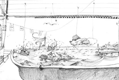 Dessin pour la Cie Mic Mac et son entre-sort SMSM* – Format originel 21x59,4cm...