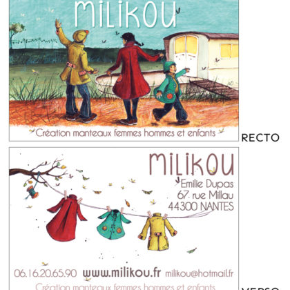 Carte de visite pour Milikou – Format 5,5x8,5cm. Illustration à l'acryliqu...