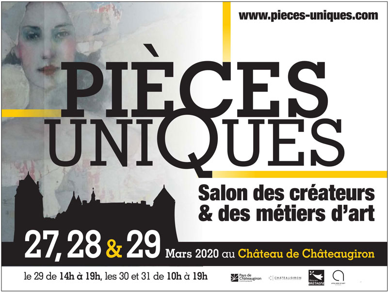 ActualitéSalon Pièces Unique du 27 au 29 mars 2020 annulé Salon des métiers d’art. Au château à CHÂTEAUGIRON (35410) Vendredi 14h à 19h – Samedi et dimanche 10h à 19h Cet été à Locronan…